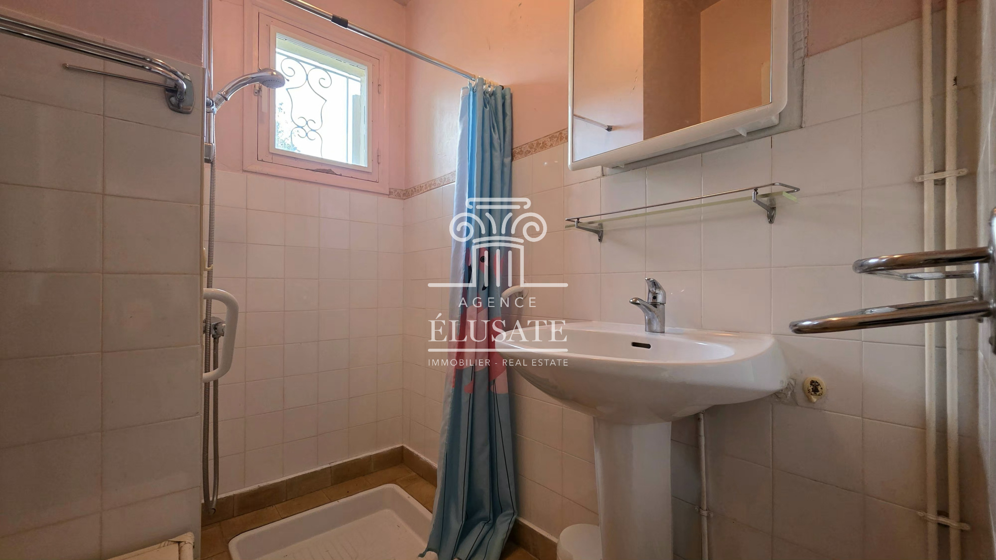 Elle offre 116 m² habitables et se compose d’une cuisine fonctionnelle, d’une salle à manger et d’un salon lumineux avec accès direct à la terrasse. La partie nuit comprend 4 chambres, dont une pouvant être considérée comme une suite parentale grâce à sa salle d’eau attenante, ainsi qu’une salle de bain indépendante.
