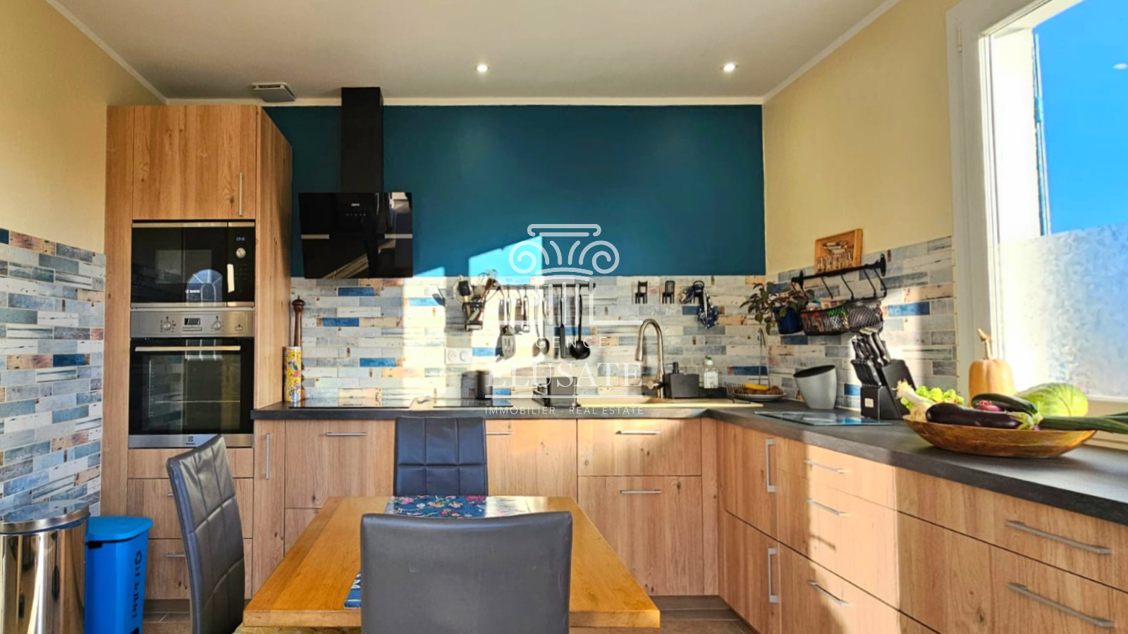 Agence Élusate vous propose à la vente cette jolie maison de 112m² composée en rez de jardin d'une belle pièce de vie lumineuse avec un accès à la terrasse, en face, vous découvrirez la cuisine équipée entièrement rénovée avec un second accès à la terrasse. Le côté nuit dispose de 3 chambres avec placards, d'une salle d'eau refaite en 2024 et d'un wc indépendant.