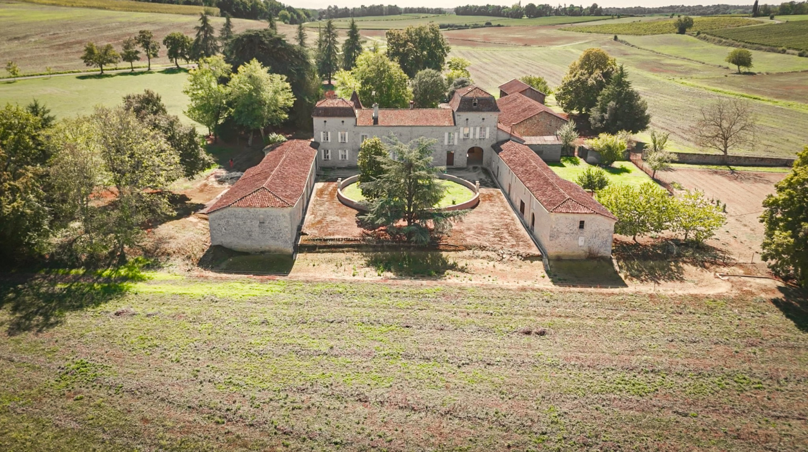 Agence Élusate vous propose, au détour d'un chemin bordé d'arbres et entourée par un paysage vallonné à perte de vue, cette splendide demeure en pierre s'impose comme un véritable havre de paix. Organisée en U autour d'une élégante cour intérieure arborée, elle offre un cadre de vie à la fois authentique et apaisant, loin de l'agitation urbaine.
