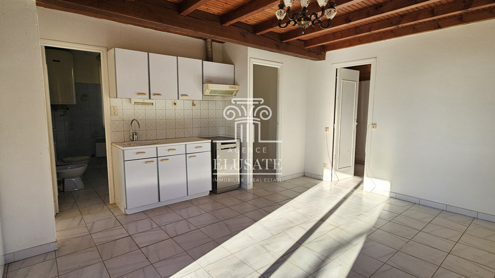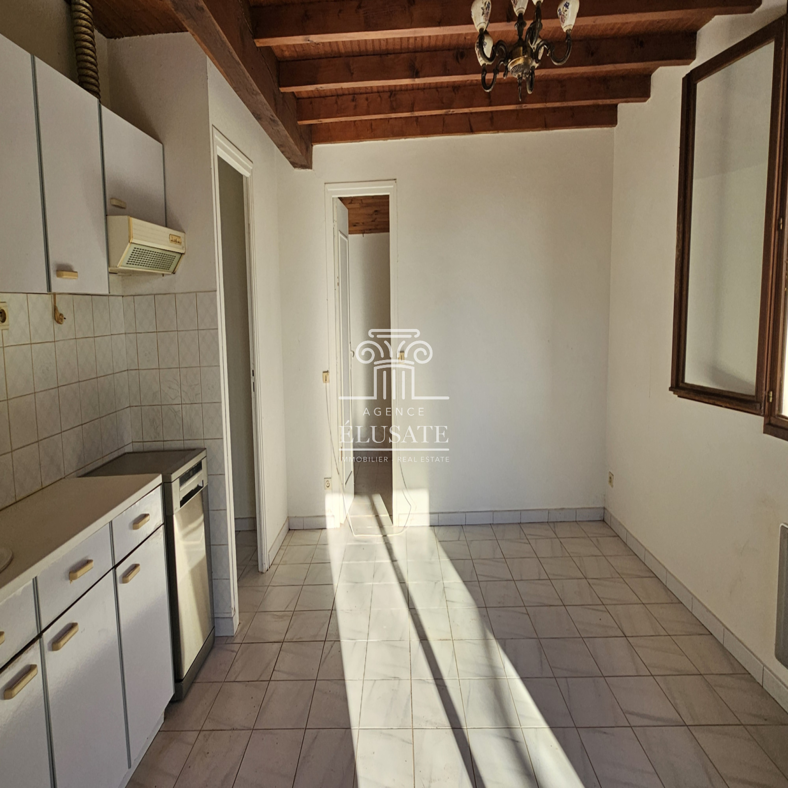 La pièce de vie lumineuse s’ouvre sur une terrasse couverte de plus de 5 m², idéale pour profiter de l’extérieur.