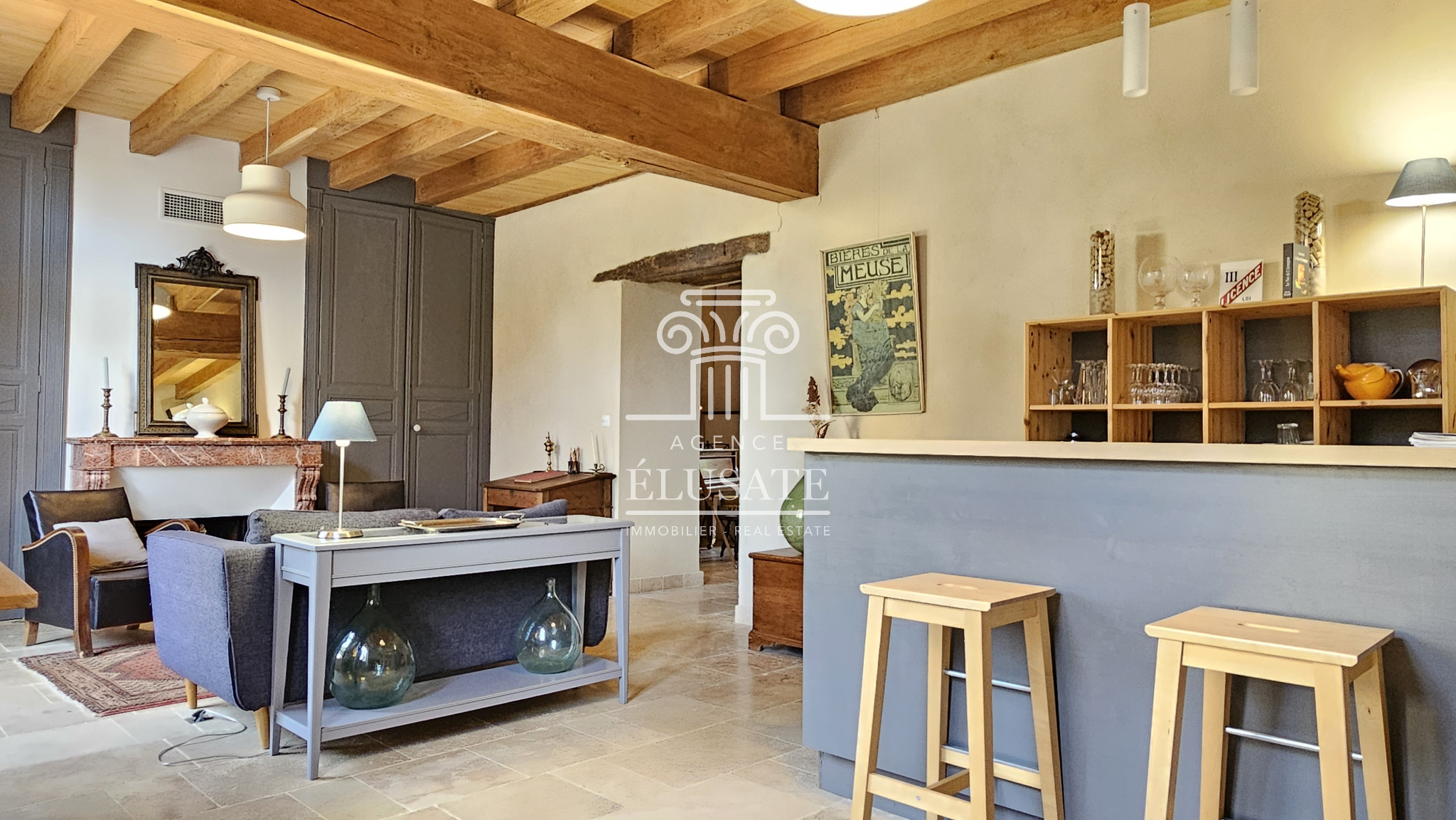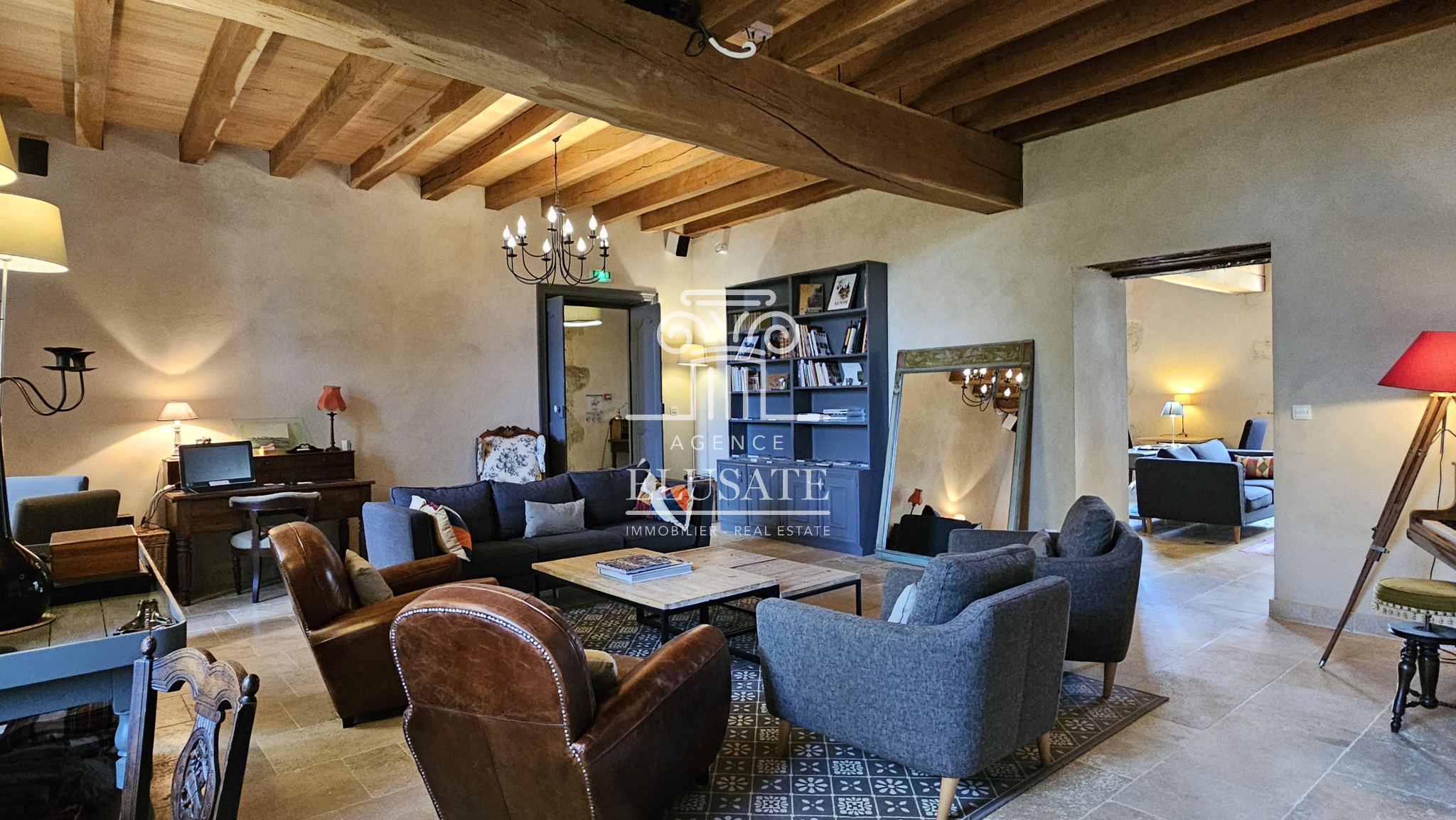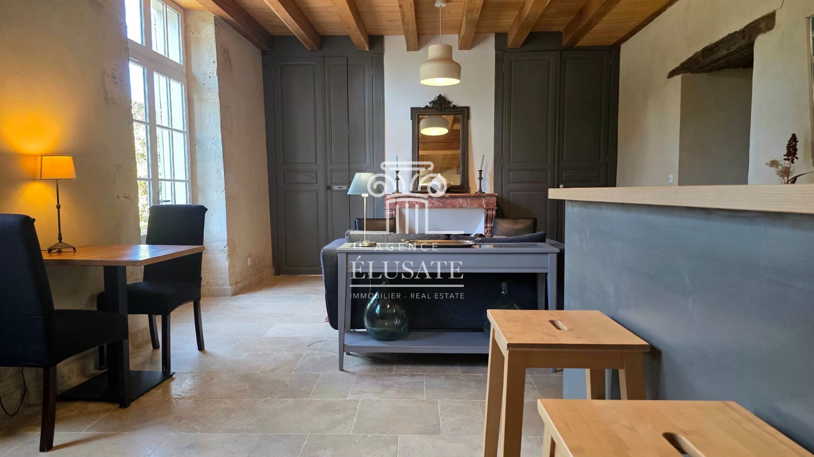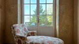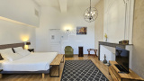 Ici, rien n’a été laissé au hasard : la rénovation a respecté l’âme du lieu tout en lui offrant le confort discret et précieux du moderne ; la pierre de taille patinée par le temps, dialogue avec les poutres en chêne qui soulignent chaque volume et les murs couleur sables fauves restaurés à la chaux aérienne, afin de conserver charme et authenticité.