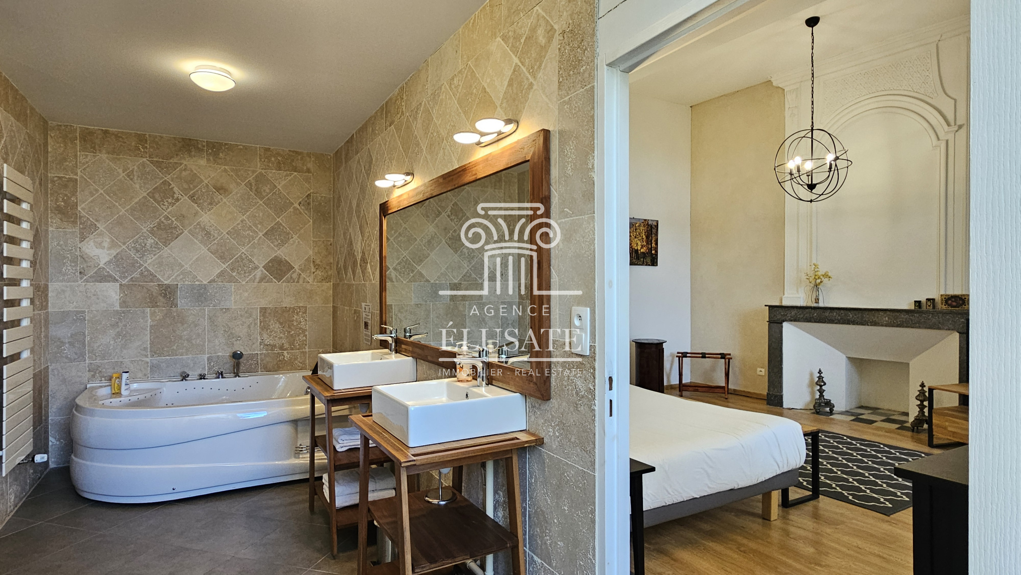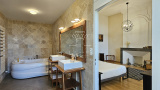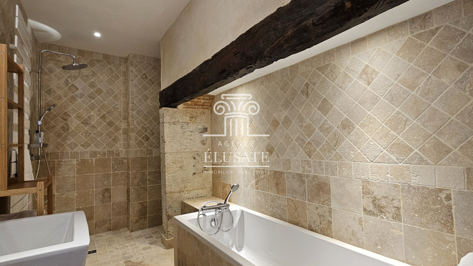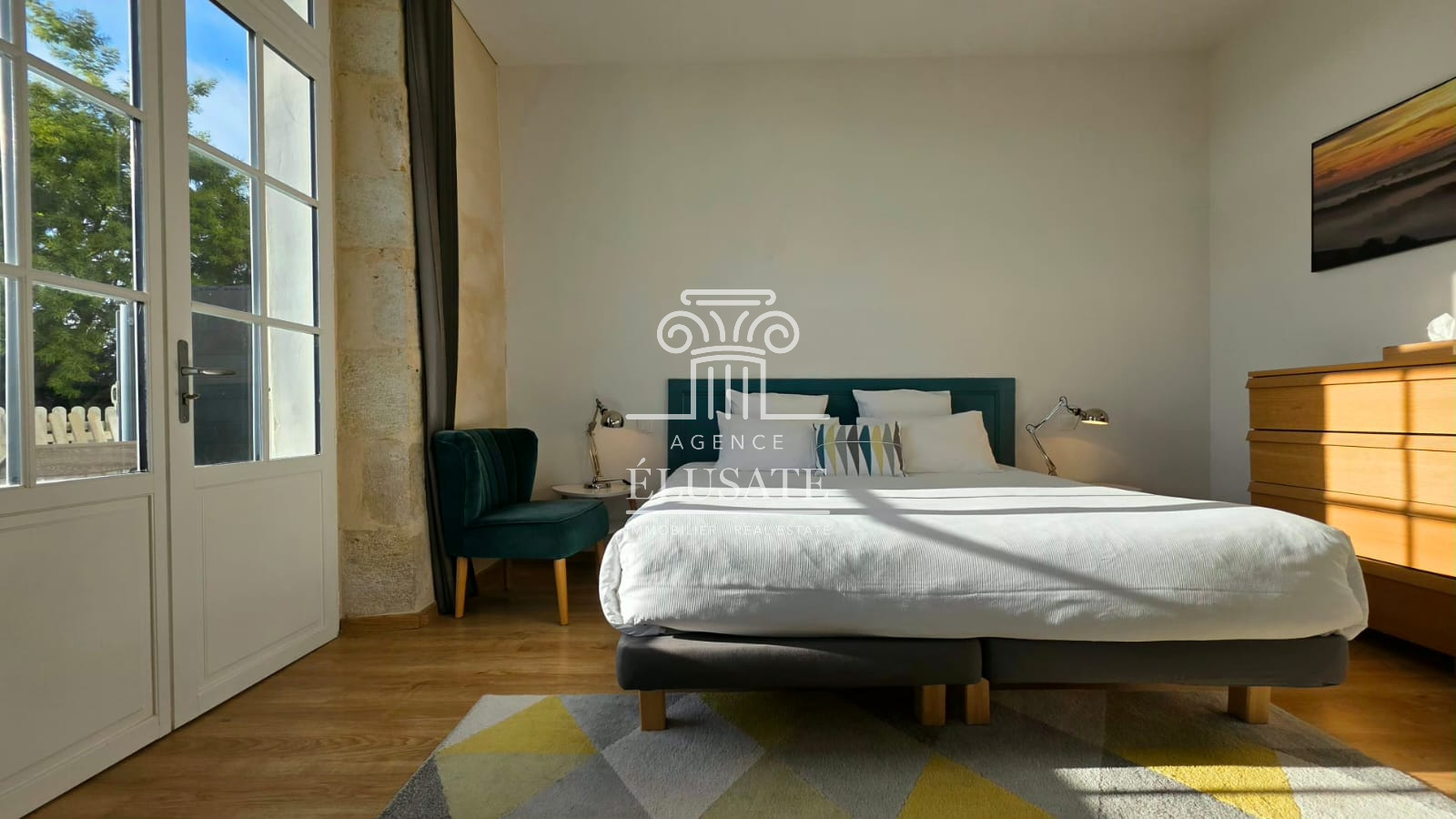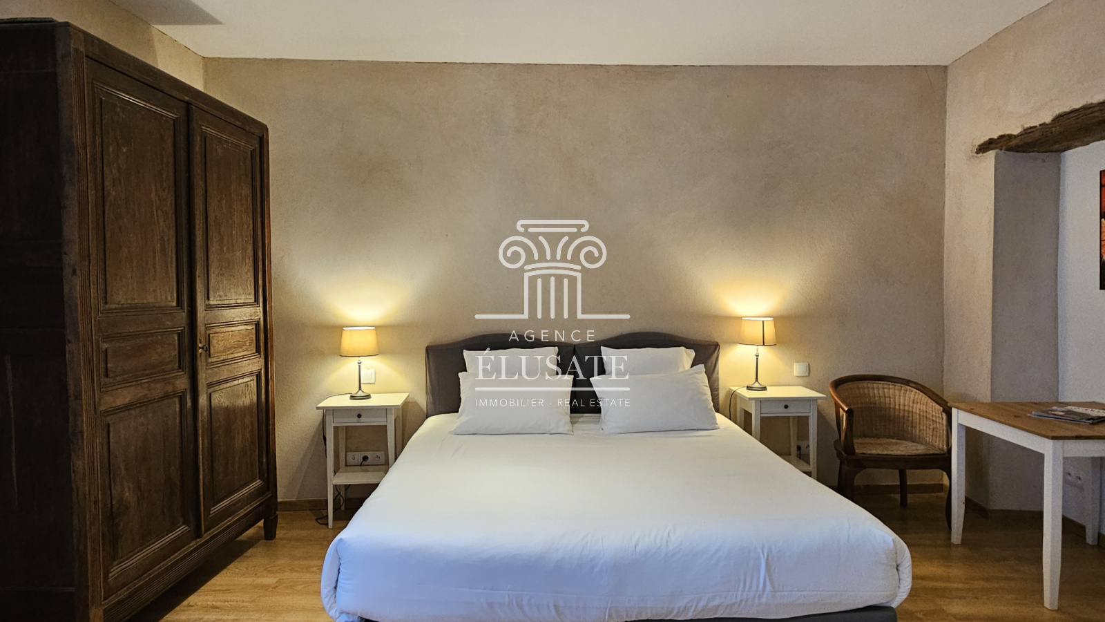 Ici, rien n’a été laissé au hasard : la rénovation a respecté l’âme du lieu tout en lui offrant le confort discret et précieux du moderne ; la pierre de taille patinée par le temps, dialogue avec les poutres en chêne qui soulignent chaque volume et les murs couleur sables fauves restaurés à la chaux aérienne, afin de conserver charme et authenticité.