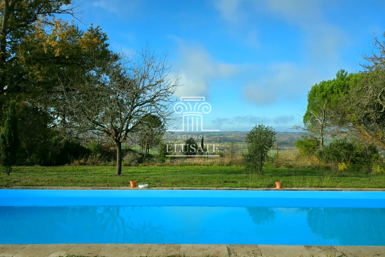 Concernant les extérieurs, un chemin discret vous emmène vers les douves du château, et découvre un jardin paisible et sa piscine 20x4 idéale pour des moments de détente et pour apprécier la douceur de vivre gersoise...Comme une invitation à imaginer réceptions, cérémonies ou simples instants de contemplation suspendus face aux coteaux gersois...le matin les collines s’étirent dans la brume dorée, le soir la lumière danse, au fil des saisons le panorama change de couleur offrant une vue simplement inoubliable.